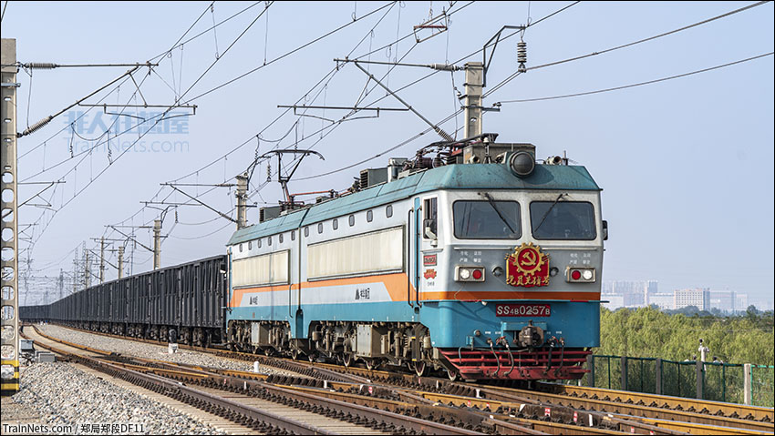 2022年9月15日。包神铁路,“党员先锋号”SS4B牵引下行货列驶出万水泉南南场。