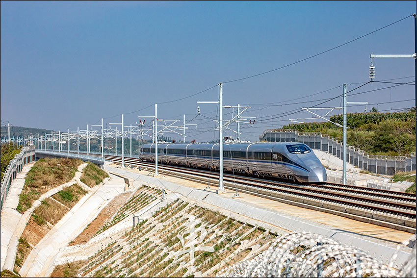 2022年9月21日,CRH380AM-0204在济莱高铁上以不同速度等级往返运行进行线路验证。