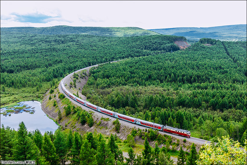 2022年7月7日,呼伦贝尔牙克石市图里河镇,牙林铁路岭北展线,呼伦贝尔号Y681次由海拉尔前往莫尔道嘎。受线路调整及防洪预警影响,这是2022年呼伦贝尔号列车唯一一次中午时段通过岭北,也是唯一一次以10辆编组运行。