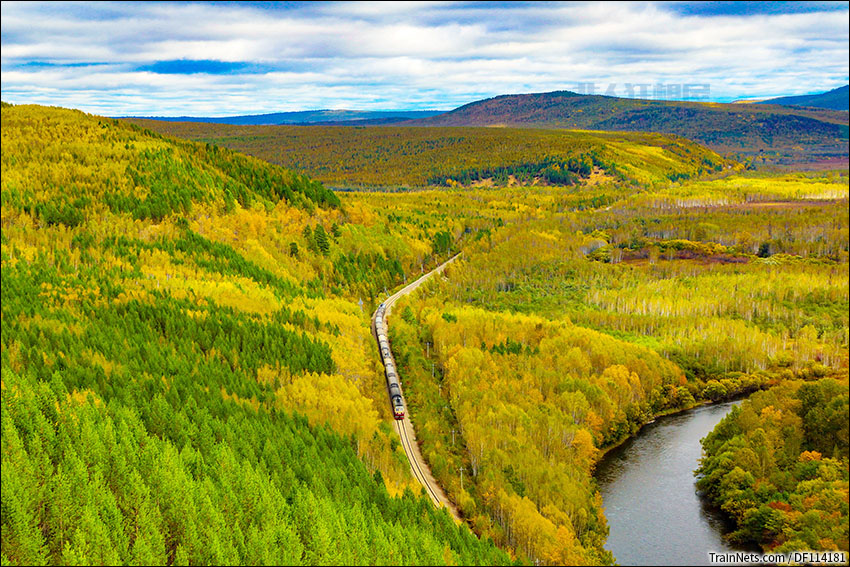 2022年9月7日,黑龙江大兴安岭,富西线,K7041次列车(哈尔滨-漠河)行驶在图强站至漠河站区间。