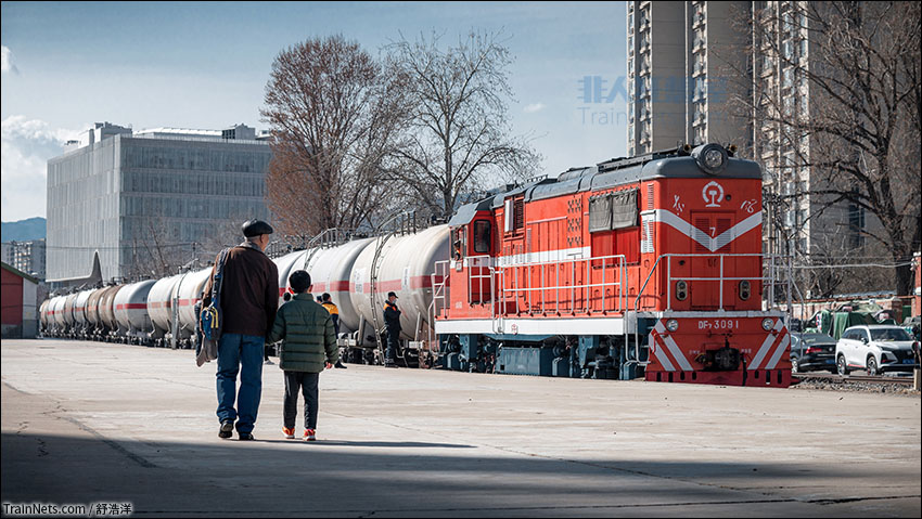 2022年3月。京门线,站台上看火车的爷孙俩。
