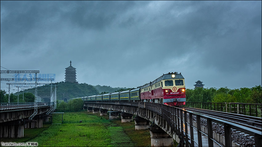 2022年7月3日。北京。京原铁路。因暴雨晚点5小时的K604次(运城-北京丰台)通过永定河大桥。
