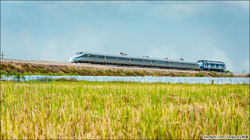2022年11月19日,DF11G牵引55382次回送CRH380AM-0204驶过松竹镇的田野,即将跨越南渡河。