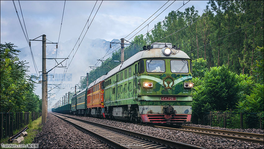 2021年8月20日。大秦铁路。清晨时分,两台东风4(瓜橘)重联牵引的57863次长钢轨列车行驶在大秦铁路北辛堡-延庆北区间。