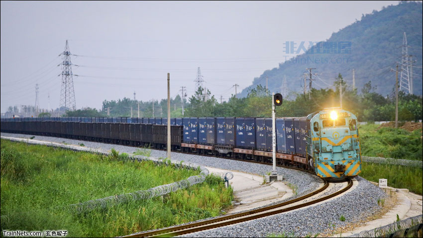 2022年8月,龙潭港驻站DF7G-0128辅修,ND5-0139牵引水陆联运集装箱大列,压过一抹销魂的弯道。