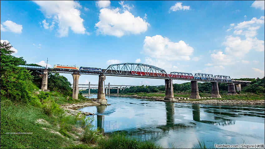 2022年8月1日,SS7附挂一台DF8B驶过湘桂线红水河大桥。