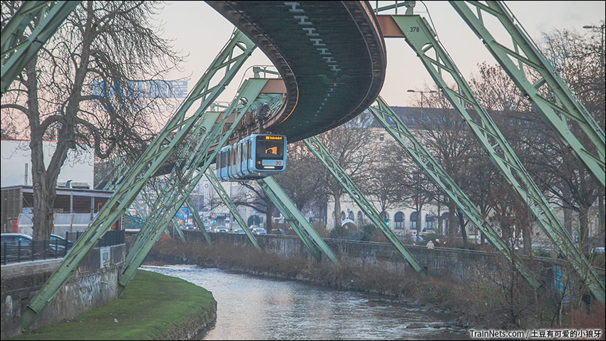 2022年12月。1901年建成的世界首条悬挂式单轨,德国伍珀塔尔悬挂式单轨列车行驶在乌帕河上。