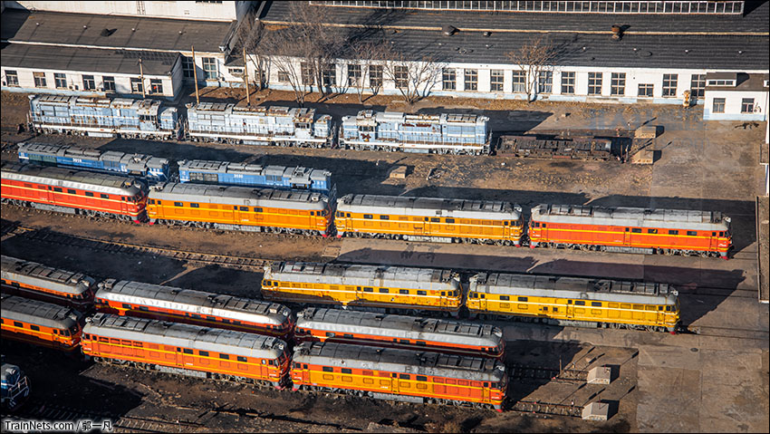 2022年12月6日。湖东电力机务段内燃车间。17台来自太局湖东、太原、侯马机务段的DF4BK型内燃机车在湖东机务段内燃车间进行热备工作。