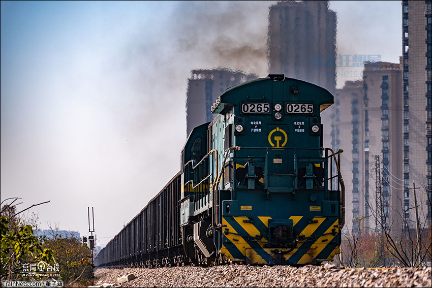 2022年12月15日。梅桂营线。上局宁东段ND5 0265牵引货列驶出浦镇站,加速前往梅桂营站方向。