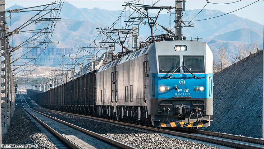 2023年1月。唐包线。呼局呼段HXD1重联牵引万吨空车通过小蒜沟站。