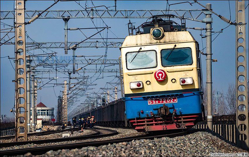 2021年1月17日。京沪线桥南线路所,韶山4-7202机车牵引21003次赶在京沪下行天窗前达速通过桥南线路所。