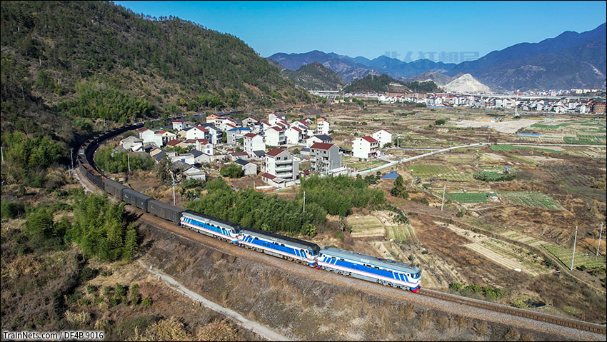 2023年1月30日,金温线石帆站,寒潮过境后难得的晴空下,三机货列通过弯道向祯埠站进发。