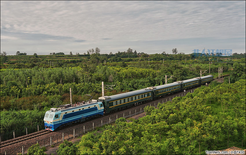 2022年8月,河南洛阳,57019次行驶在焦柳铁路邙山展线,机后挂郑局红外检测车,由于57017/18/19/20次是目前唯一图定走侯月铁路的客车,因此它也肩负着各项线路的检测工作。