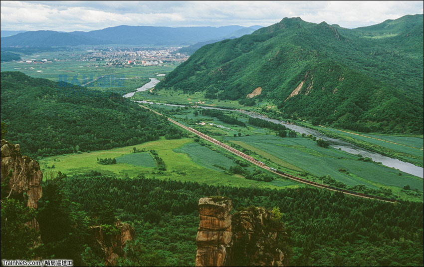 2008年8月。绥佳线绿潭。K339次(北京-佳木斯)和东风4机车牵引的摘挂列车会车。