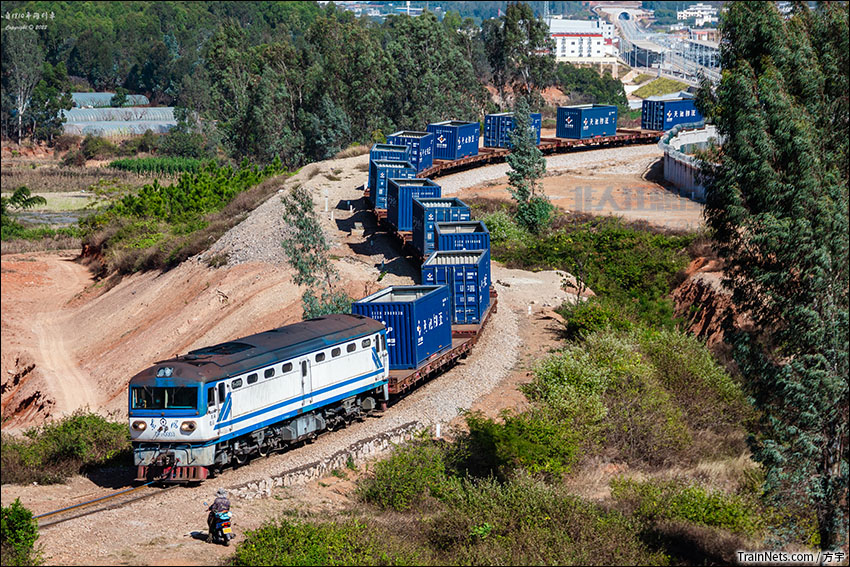 2022年12月。米轨集装箱货运班列驶出珠江、红河分水岭系即将进入开远城区。