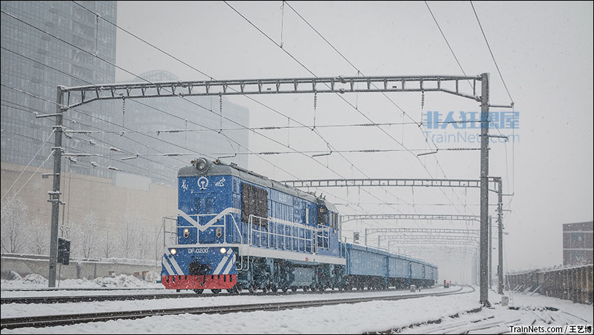 2023年2月。石德铁路。雪中的检衡车小运转。