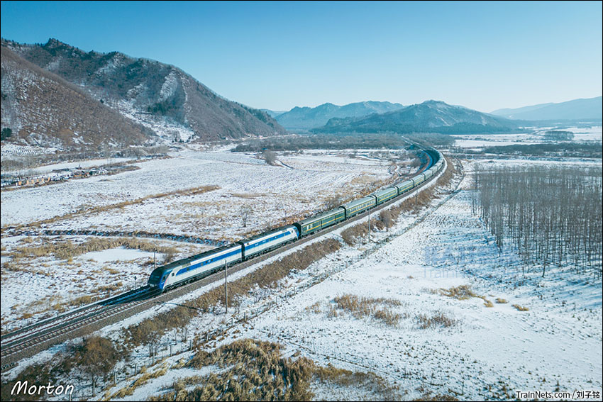 2023年2月3日,绥佳铁路,K340次(佳木斯-北京)从山间驶过,即将接近南岔站。