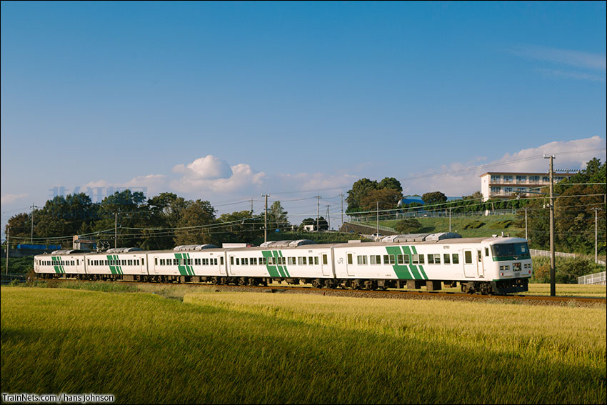 2018年10月2日,日本静冈县大场市,185系舞女号列车在伊豆箱根铁道骏豆线上行驶。