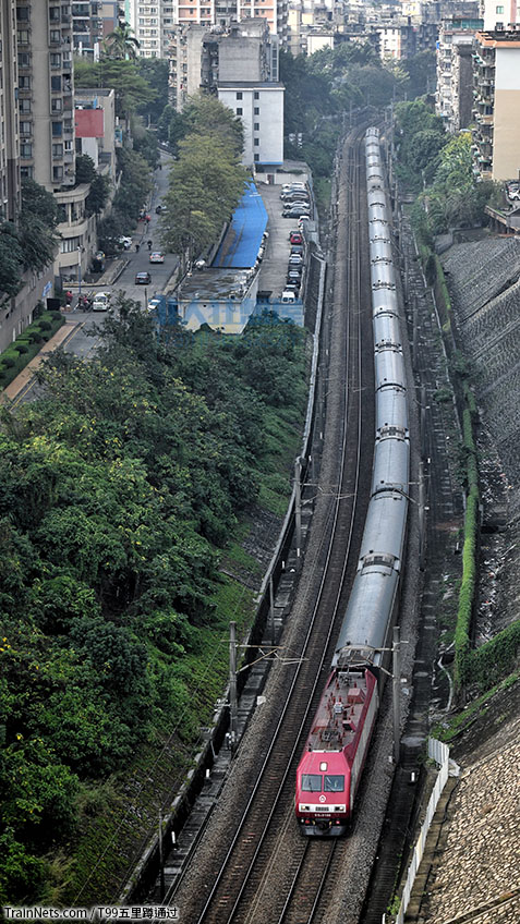 2023年1月14日,广深线,韶山9-0100号机车牵引晚点的Z112次(海口-哈尔滨西)穿行在广州市区,前往广州东方向。