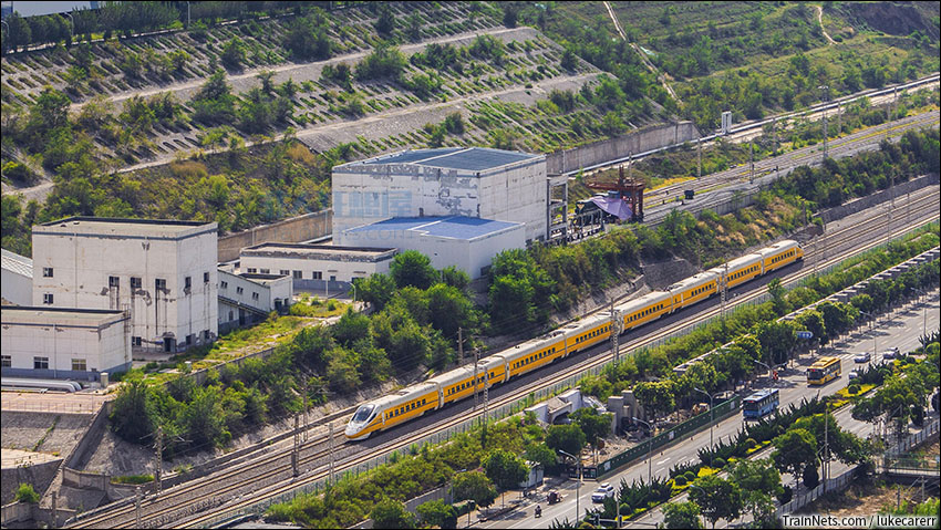 2020年8月12日,甘肃兰州,兰新线。由CRH5J-0501担当的DJ1924次列车行驶在陈官营-兰州西区间,接近兰州西站。