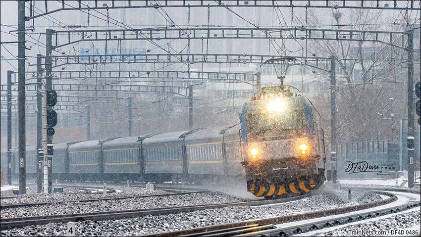 2022年1月。隆冬。石太线。京局石段HXD3C-0959牵引的K893次(杭州-太原)冒着大雪,划过弯道,驶向太原站。