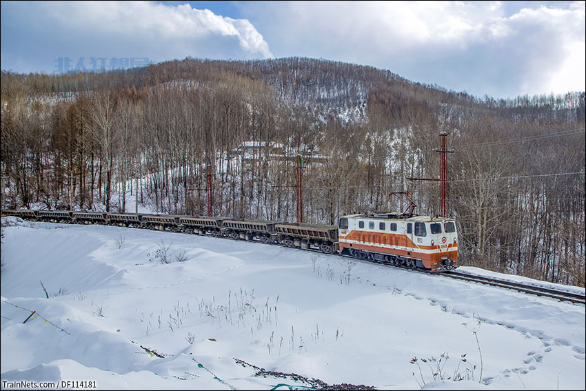 2023年2月,吉林白山,板石矿的空车运行在雪后密林中的专用线上,旁边的矸石山已经被白雪覆盖。