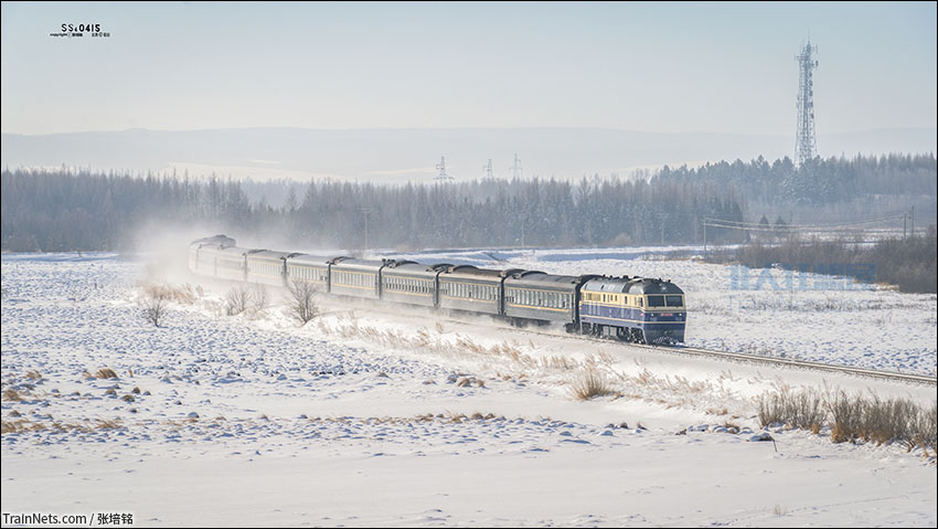 2023年2月14日,牙林线,K7095次(海拉尔-哈尔滨)煤田站出站向林海的更深处进发。