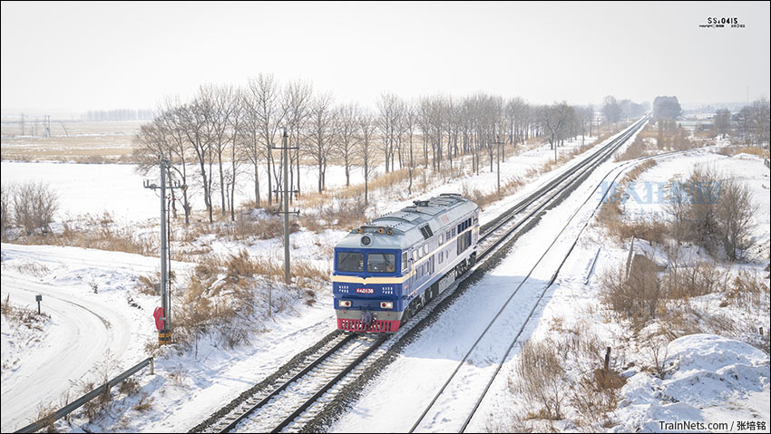 2023年2月17日,林东线,东风8-0138单机即将通过连珠山站。