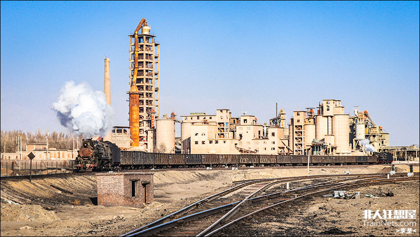 2023年2月,哈密三道岭,两台建设蒸汽机车组成的推挽大列从南站前往新装站。