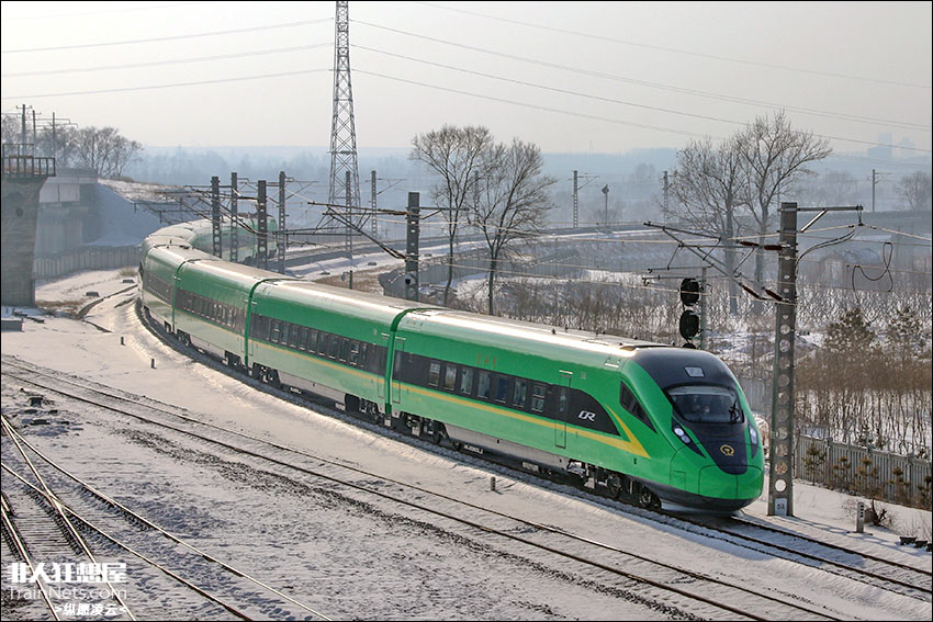 2023年1月26日,黑龙江鹤岗,佳鹤铁路。CR200J-1104驶过鹤岗线最后一个弯道,即将通过大陆站。
