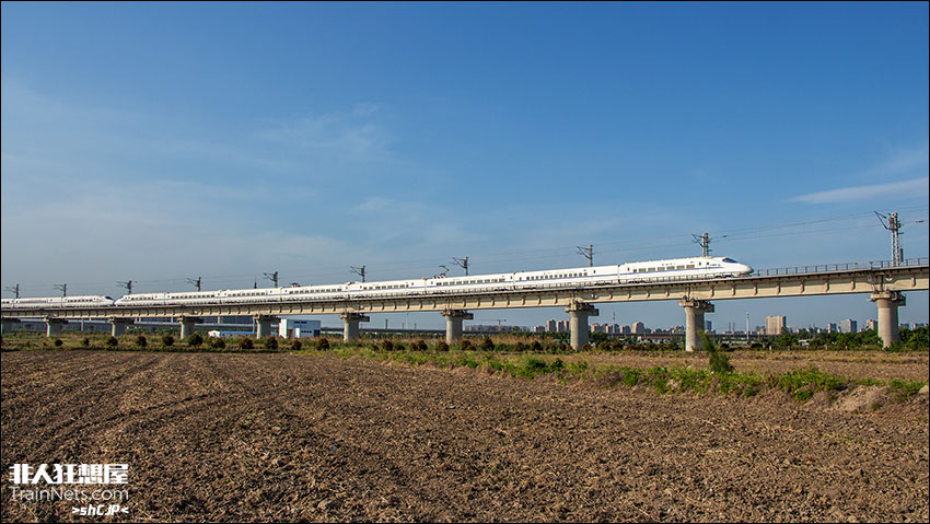 2023年5月。上海南翔枢纽,行驶在黄封联络下行线的高铁。