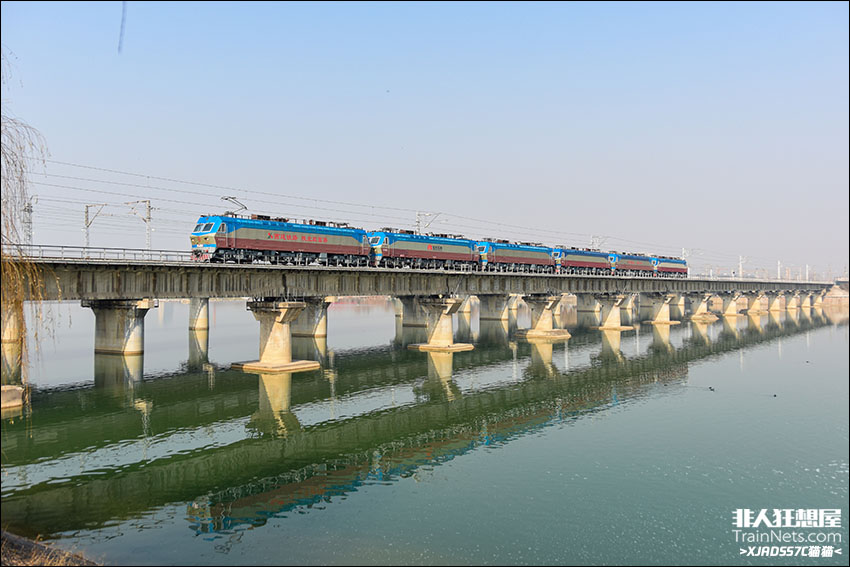 2023年4月。从西康线长哨折返段解封的SS7D返回西安通过灞河大桥。