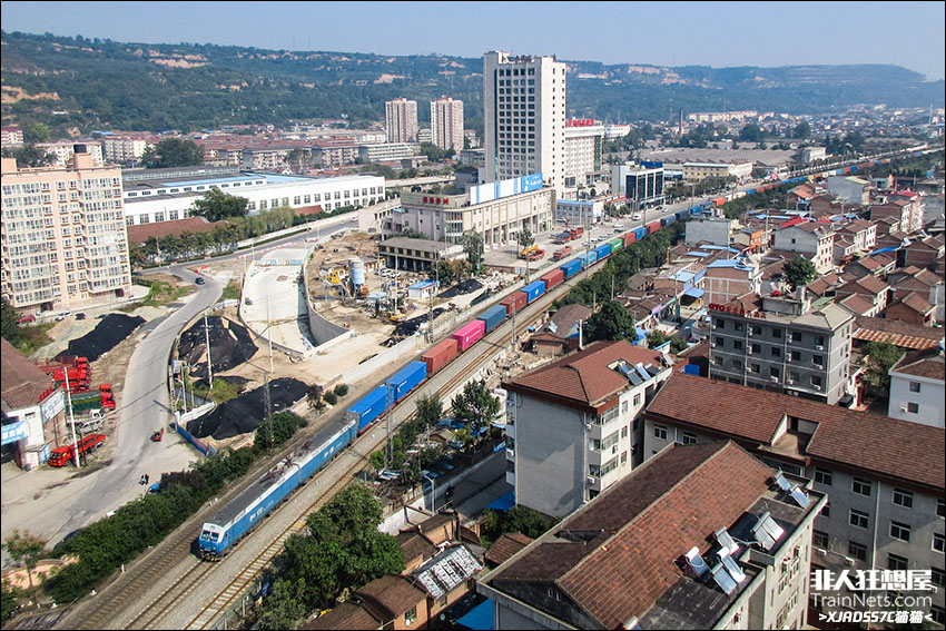 2023年3月。HXD1型机车牵引中欧班列通过陇海线蔡家坡站。