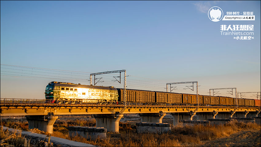 2022年11月13日,京广线,涿州货场,涿州至琉璃河南站区间,京局石段DF4B-3651牵引42104次,夕阳金光打在机车上形成了“金瓜”。