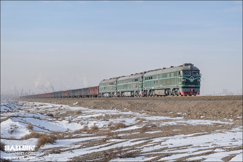 2023年初,恢复运行的嘉策铁路三机DF4B通过酒钢八号门开往策克口岸。