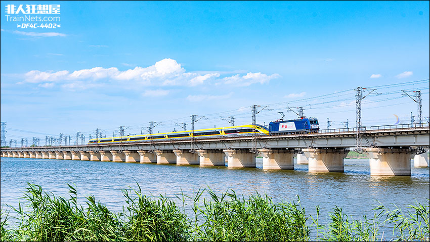 2023年6月11日,京沪线,00135次列车回送南下实验的CR400AF-J通过静海独流减河桥。