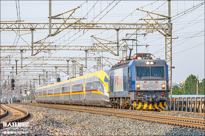 2023年6月11日,山东德州,00135次,回送CR400AF-J-0002通过京沪线长庄站,即将到达德州站。