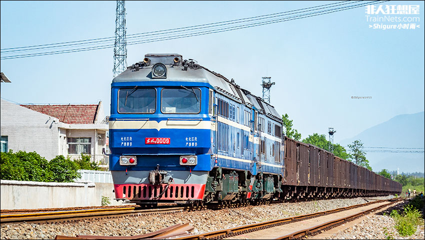 2023年4月30日,双机DF8牵引武钢矿石大列在金山店站待发。由于铁灵支线坡度较大,铁山-金山店间采用双机牵引。