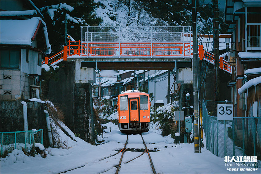 2018年1月13日,日本岛根县云南市,木次线KIHA120形在木次站。