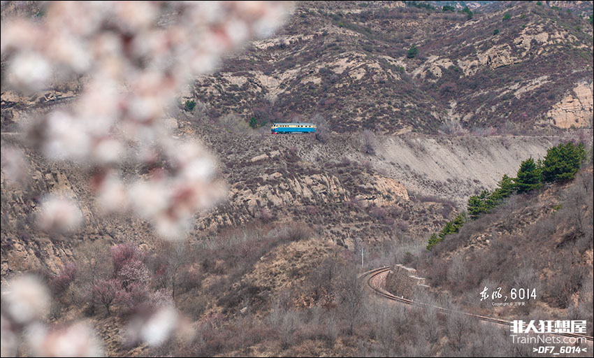 2023年4月,太焦线,蓝色的DF4BD机车装点着初春的太岳山脉。