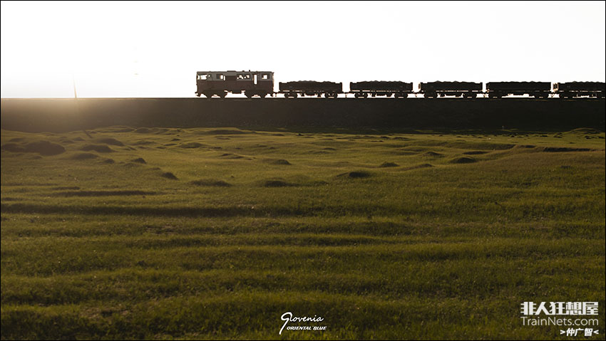 2023年6月22日,蒙西水泥专用铁路,小火车满载着石灰石行走在夏至的夕阳下,前往工厂。