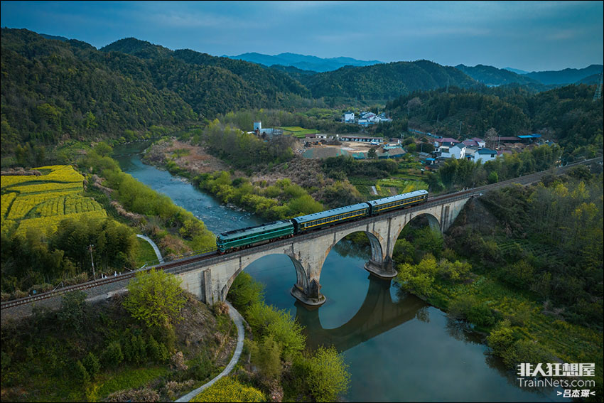 2023年4月2日,皖赣通勤8462次列车在祁门县外跨过阊江。