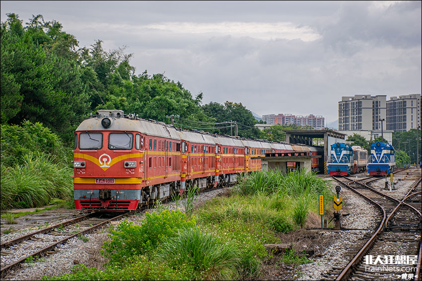 2023年6月,封存在广茂线春湾的DF4B客运型机车。从2022年7月开始,广州机务段分三批将9台“五颜六色”的橘子调入春湾进行封存,第一次2309、2380、2602;第二批2467、2527、2603;第三批2234、2308、2526。