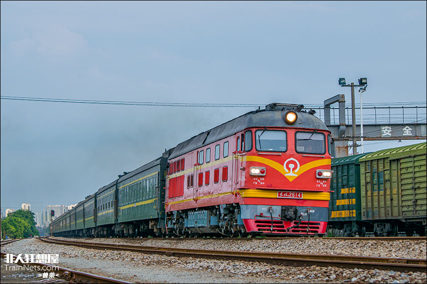 2023年6月,客车K1205次(深圳东-昆明)街边站两道通过,有趣的是该车DF4B-2614为上午K1206次本务,2614回段休息不够半天又被迫上班。