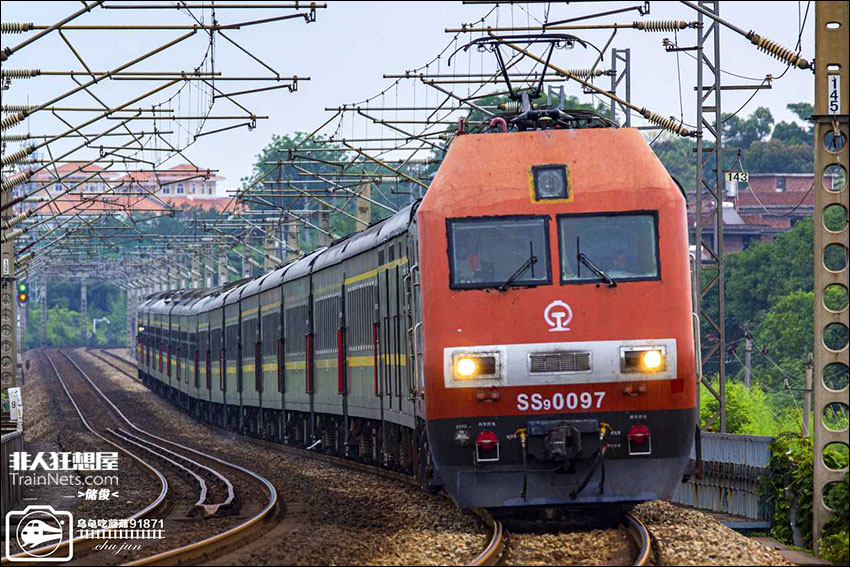 2023年6月。广铁广段SS9G-0097牵引K209次(宁波-广州)行驶在京九铁路。列车驶出赣州站,往大余站方向。