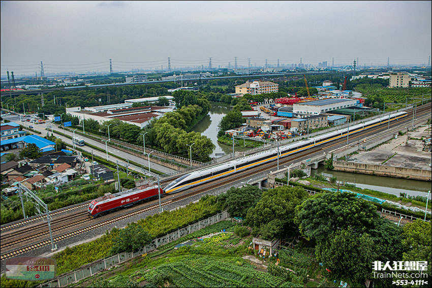2023年7月9日,京沪线。CR400BF-J动检无火回送通过安亭站。