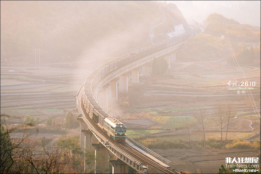 2023年1月29日。清晨,山谷间的薄雾还未散去,益湛线迎来少有的超长货列,瓜爷嘶吼着喷出长串白烟,牵引26210次加速驶向邵阳。