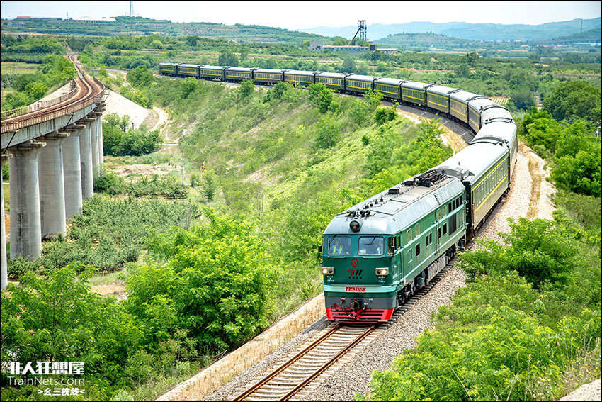 2023年6月。桃威铁路路徽的DF4B-7655牵引客车K1066次(威海-武昌)通过桃威铁路改线机位。