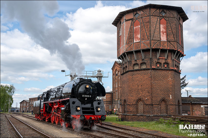 2023年5月,Wittenberge扇形机库,BR 01 0509 (1935年生产) 行驶过塔建于1898年老水塔,百年弹指之间。
