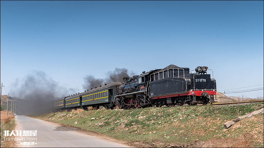 2023年5月。上游1770采用“倒骑驴”方式牵引旅游列车行驶在铁法线上。